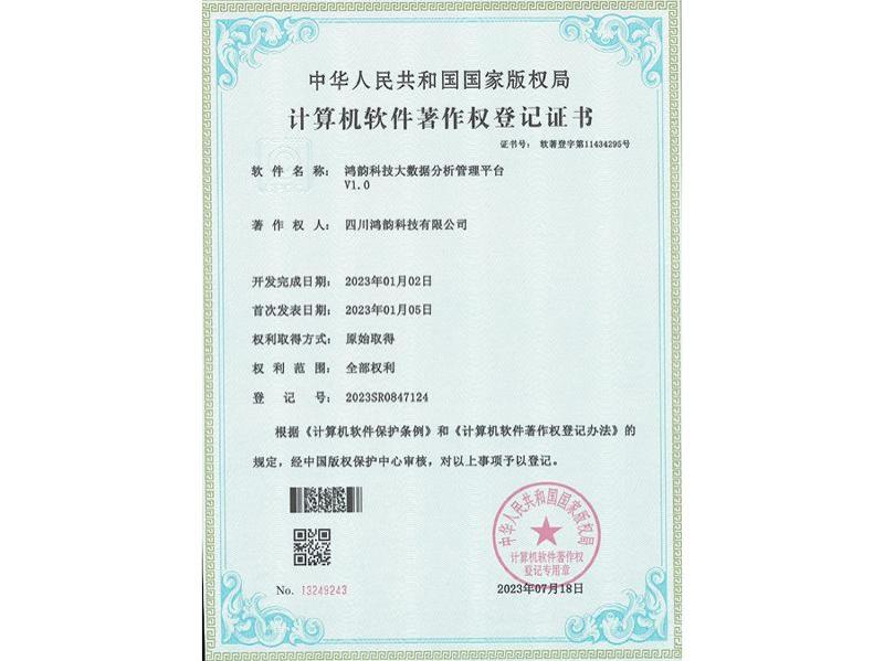 鸿韵科技大数据分析管理平台著作权